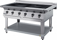 6 конфорк; сплошная стальная поверхность конфорка; 380 В